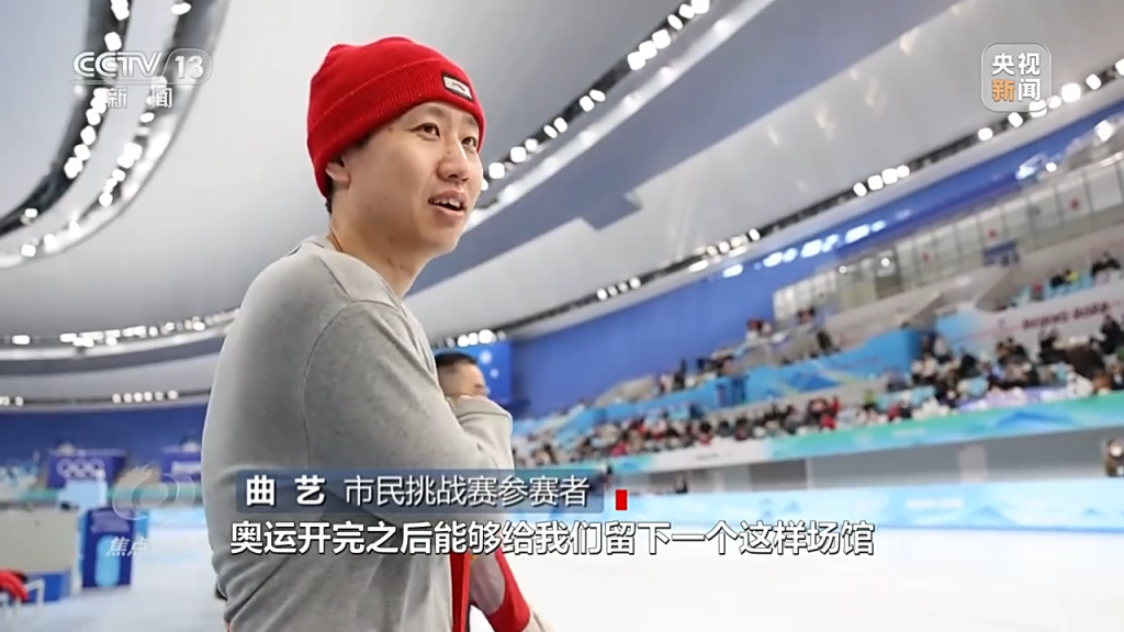 市民挑战赛参赛者 曲艺:“奥运开完之后能够留下这样一个场馆,让我们这些市民还有爱好者们有一块专业的场地一起参与冰雪运动,觉得开一次奥运留下这么多宝贵的财富,这也是我们爱好者和作为北京市民的骄傲。”